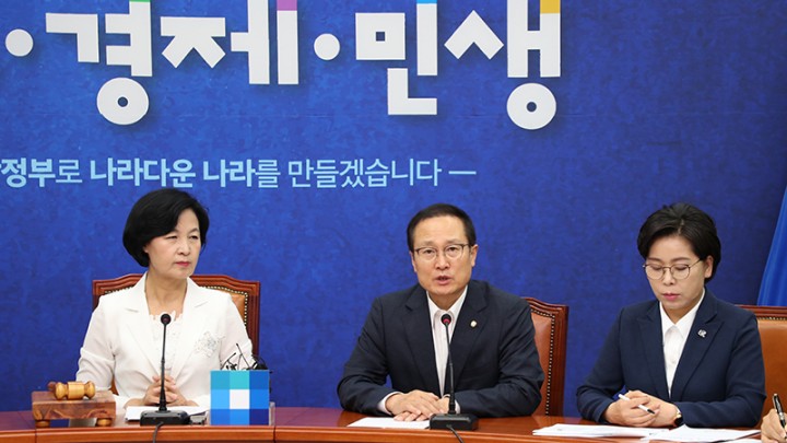 <사진 : 9일 최고위원회에서 발언중인 홍영표 더불어민주당 원내대표. 출처 : 더불어민주당 홈페이지>