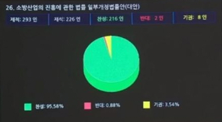 <사진 : 소방산업의 진흥에 관한 법률 일부개정법률안(대안) 투표 현황. 출처 : 본회의 중계 캡쳐>