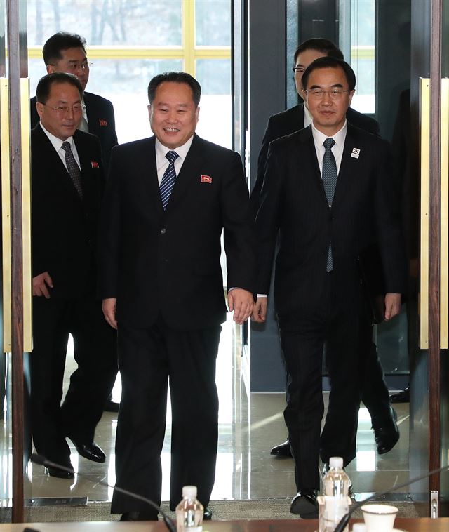평창동계올림픽을 계기로 전격적으로 이루어진 남북 고위급 회담이 9일 오전 10시 판문점 평화의 집에서 우리측 조명균 통일부장관 과 천해성 통일부차관, 노태강 문체부 제2차관, 안문현 국무총리실 심의관 김기홍 평창 동계올림픽 조직위 기획사무차장과 북측 리선권 조평통 위원장, 전종수 조평통 부위원장, 원길우 체육성 부상, 황충성 조평통 부장, 리경식 민족올림픽조직위원회 위원이 참석한 가운데 진행되었다.