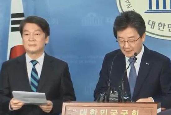 안철수 국민의당 대표와 유승민 바른정당 대표가 양당간의 합당을 위한 통합공동선언을 18일 11시 10분 국회 정론관에서 가짐으로서 통합을 위한 행보를 더욱 가속화하기 시작했다.