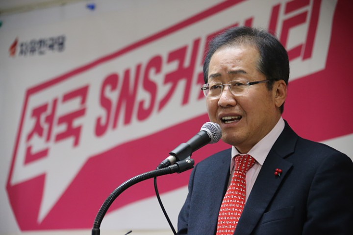 <사진 : 지난 20일 전국 SNS 커뮤니티 대표단 워크샵에 참석한 홍준표 당 대표. 출처 : 자유한국당 홈페이지>