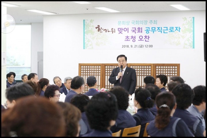 문희상 국회의장은 921일 한가위를 맞이해 청소 공무직근로자들을 초청해 오찬간담회를 가졌다.