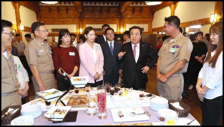 문희상 국회의장은 95일 오후 국회 사랑재에서 국군모범용사 내외를 초청하여 간담회를 가졌다.