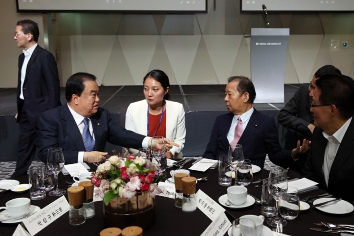 문 의장은 이어 “최근 한반도 냉전의 해체는 비단 한국과 북한 뿐 아니라 일본에게도 새로운 발전의 원동력이 될 것”이라면서 “한일 정치 지도자들이 한반도의 영구적 평화 정착을 위해 더욱 긴밀히 협력하길 바란다”고 전했다.