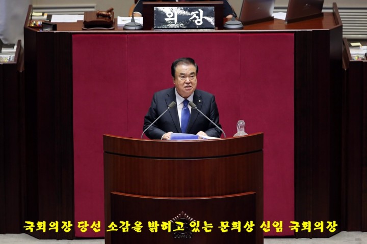 <사진 : 당선 인사말을 하는 문희상 신임 국회의장. 출처 : 국회 제공>