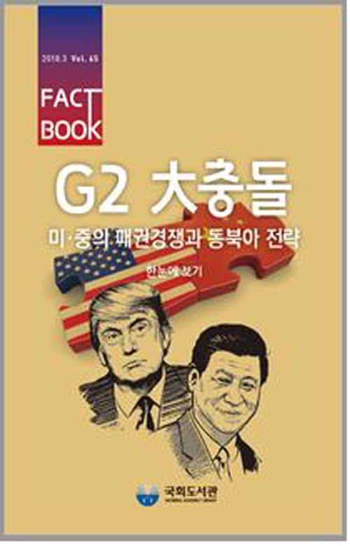 미국과 중국의 패권경쟁과 동북아 전략을 다룬 “G2 대 충돌 : -중의 패권경쟁과 동북아 전략이라는 도서가 국회도서관에 의해 팩트북으로 발간되어 양국의 상황을 한눈에 보기 쉽게 설명하고 있다.