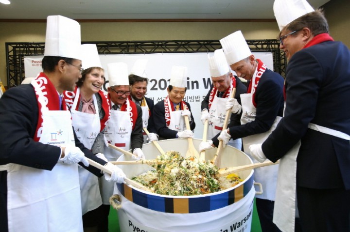 130인분의 대형비빔밥 만들기에 직접 참여한 정 의장은 폴란드 체육계 및 의회 관계자들에게 점식식사를 대접하며, “평창동계올림픽은 비빔밥처럼 평화와 화합이라는 올림픽 정신을 구현하는 세계인의 축제가 될 것”이라고 설명했다.