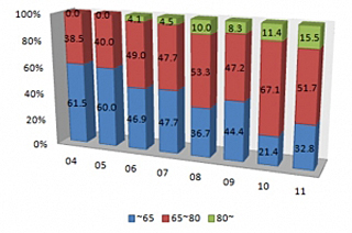 ?? ¢¬©ª ??¡¤?¢¥? ©ö?, ??¡¾? 5©ø?¡Æ?¨¬?¢¬??? ????¡Æ¢® 84.6% ??¡Æ¢®?? ¡Æ??¢¬¡¤? ©ø¨£?¢¬©ø?¢¥?. 19?? ¡Æ?¡Æ¡©¨¬¢¬??¨ö???¨¡?¡Æ¢®¢¯©ª?¨¬ ??¡¾? 5©ø?¡Æ?(2007~2011©ø?)?? ¨ö???¡Æ??¢´??¡¤?¢¬? ??¢¯??¨ª ¢®¢ç¨¬?¢¬???¢®?¢¯¢® ¢¥??¨ª ¨¬¨¢¨ù¢ç?? ¡Æ?¡Æ?, ?©ª¡¤???¢¯©ª?¨¬ 2007©ø? 20¢¬¢¬7??¢¬?¢¯¢®¨ù¡© 2011©ø? 38¢¬¢¬3??¢¬??¢¬¡¤? 5©ø?¡Æ? ¨ú? 17¢¬¢¬6??¢¬?(84.6%)?? ??¡¦